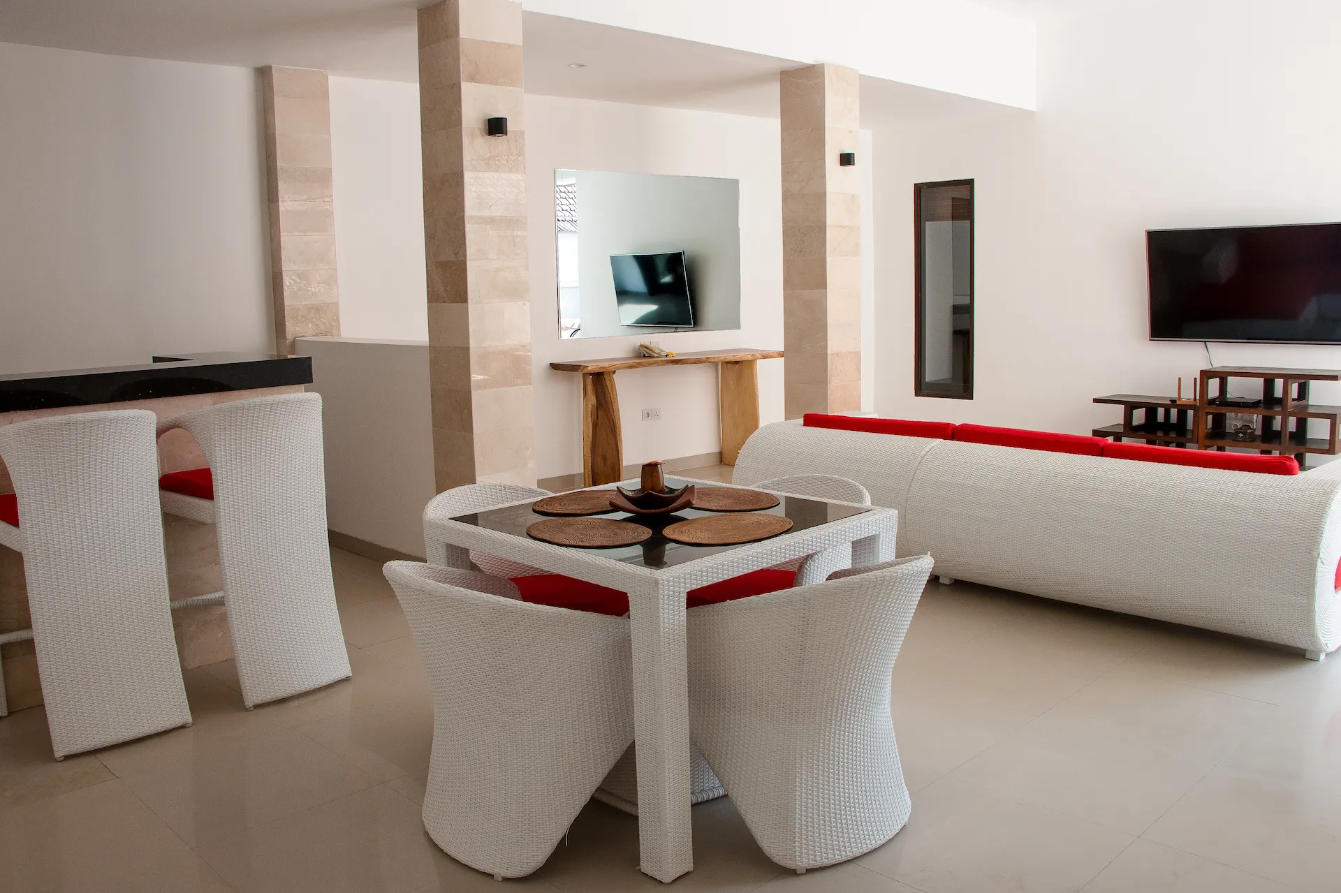 Spacious living and dining areas with elegant furnishings and contemporary décor