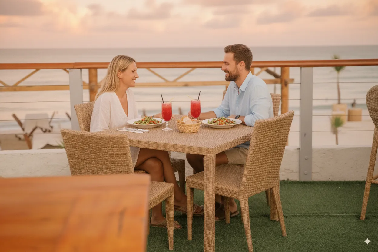 Join us every day for Happy Hour, when our bartenders serve up refreshing cocktails, icy beers, and hand-picked wines at special prices. Paired with a relaxed, open-air setting and an unbeatable view, the Rooftop Sunset Terrace is the ideal place to begin your evening on the island.